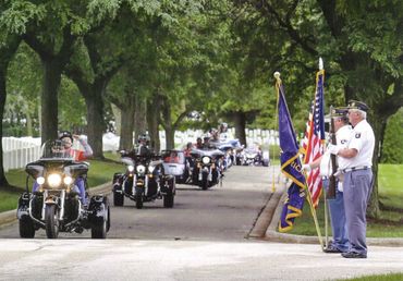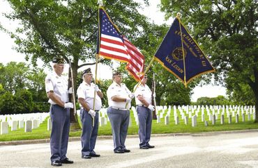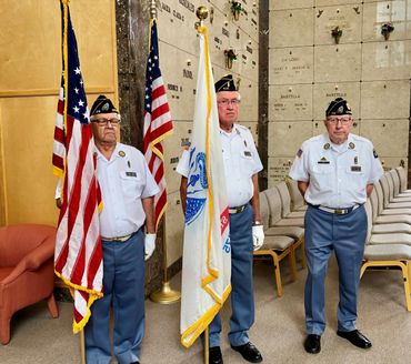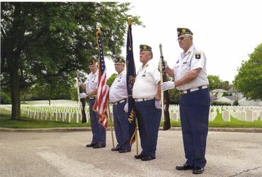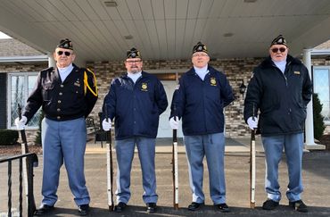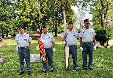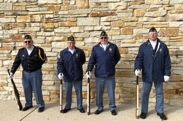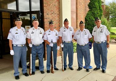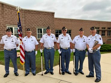 From right to left: USMC Veterans: Bill Haschker, Leary Peterson, USMC Major, Dennis Roth, Capt. Bob Zolandz, USMC Sergeant.
